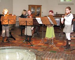 ![]() ![]() Zondagmiddag had de Drentse Activiteiten Commissie Peize een concert georganiseerd in de Peizer kerk. Voor een goed gevulde kerk traden de accordeonisten Gertie Bruin en Theo Bodewits op met werken van oude en hedendaagse componisten. Het Groninger duo dat al meer dan 10 jaar gezamenlijk optreed, niet op feesten en partijen, had een speciaal programma voor vanmiddag in elkaar gestoken wat zeer gewaardeerd werd. Als voorprogramma lieten vier Peizer meiden, het 'Galuppikwartet' vormend, hun vioolspel horen. De vier Femke, Emma, Anne-Sophie en Carolien onderleiding van Carolyn van Gemert brachten een opgelegd stuk en een zelf uitgezocht stuk ten gehore. Wat uiteraard met een groot applaus werd beloond |