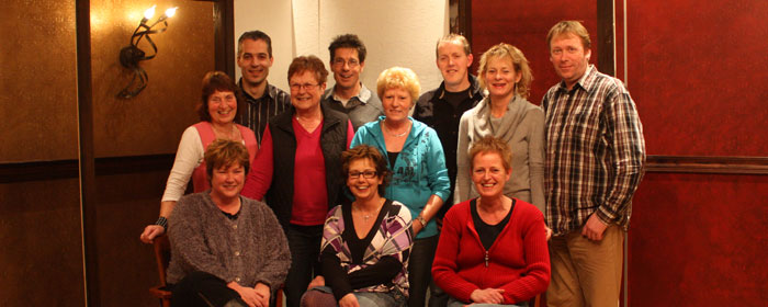 | Al een aantal maanden zijn de leden van 't Paiser Vermoak drukdoende met het instuderen van hun rollen voor het nieuwe toneelstuk. Dit jaar wordt driemaal het blijspel 'Pas op! Schrikdraod' in café Ensing gespeeld. Elke week wordt gezamenlijk gerepeteerd door; Lenie, Anneke, Henk, Joop, Harmanna, Tineke, Jan, Rianne en Jacob. Als soufleusse is Gerda drukdoende en het geheel staat onder de bezielende leiding van Pieta. Volgende week woensdag is de voorverkoop voor de optredens die in maart zullen plaats vinden. |