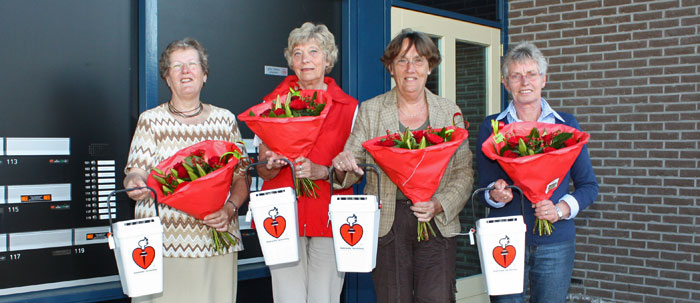 | Maandagavond heeft de plaatselijke organisatie van de hartweek 4 collectanten in het zonnetje gezet. De vier hebben respectievelijk 35 en 30 jaar met de collectebus door Peize gelopen voor de Hartstichting. Behalve een geschenkje die alle collectanten maandagavond bij het inleveren van de collectebus ontvingen kregen de dames een oorkonde en een mooi boeket bloemen overhandigd. De vier dames maken onderdeel uit van een groep van 54 collectanten die zich dit jaar weer voor de Hartstichting hebben ingezet in Peize. |