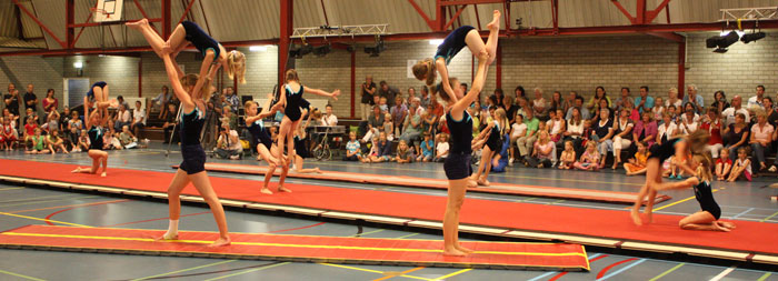 | Zaterdagmiddag is door de jongste leden het eerste deel van de jaarlijkse uitvoering getoond. Rond de tweehonderd gymnasten lieten zien wat zij dit jaar geleerd hadden. De diverse trainingsgroepen van DSTV kwamen op de vloer. Grootouders, ouders, broers en zussen kregen een gelikte, op de uitgevallen lichtinstallatie na, show te zien. De jongste kinderen van peuter- en kleutergym deden zwaar verkleed hun oefeningen als was het een dagelijkse bezigheid. Gymnastiekgroepen toonden hun vaardigheden aan de diverse toestellen. Bewegen op muziek was iets waar drie Jazzdance groepen de gehele vloer voor nodig hadden. Technische hoogstandjes waren te zien in de uitvoering van de turngroep. Speciaal deze middag was de aandacht die de loopgroep van DSTV kreeg. Dit in verband met hun deelname aan de Samenloop voor Hoop van het KWF in Roden. Op de DSTV-site meer foto's.