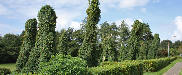| Peize is een dorp dat geassocieerd wordt met hop. Dit komt omdat Peize van oudsher een dorp was waar veel hop werd verbouwd. In de 17e eeuw waren er maar liefst 83 hopbouwers die tezamen ongeveer 85000 hopkuilen hadden. Tegenwoordig wordt er door de werkgroep Hoptuin met liefde een aantal hopstaken onderhouden. Aan het Noordsepad, fietspad vanaf de Hoppekampweg (whats in a name) naar de Gronigerweg, staan een tiental hopstaken die nu rijk gevuld met hopbellen zijn. Binnenkort worden de hopbellen weer geplukt om als ingrediënt bij het brouwen van bier te dienen. |