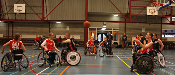 | De rolstoelbasketballers van basketbalvereniging Flying Red uit Roden waren zaterdag gastheer in de Peizer sporthal. In de eerste wedtrijd werd er door beide teams (flying red in het rood) fysiek hard geknokt om de bal. Het constante geluid van op elkaar rijdende de rolstoelen was niet van de lucht. Ondanks de constante contact momenten werd er in een zeer sportieve sfeer gestreden. Er werden zaterdag een aantal competitie ronden gespeeld door teams uit o.a. Den Helder, Apeldoorn en Roden. De competitie voor rolstoelbasketballers wordt in toernooivorm (meerdere wedstrijden op een dag) gespeeld omdat het een landelijke competitie is. De spelers en speelsters van Flying Red komen uit de drie noordelijke provincies. Voor informatie over rolstoelbasketbal kijk je op de Flying Red website. |