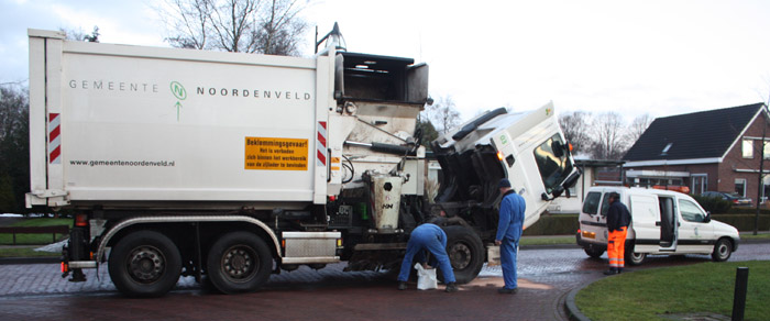 | Maandagochtend zijn de vijf huisvuilauto's van de gemeente Noordenveld uitgereden naar Peize om het door de sneeuwval opgespaarde huisvuil op te halen. Op maandag zou in heel Peize het huisvuil worden ingezameld. Met vier vuilniswagens zou heel Peize maandag van haar vuilnis verlost worden. Of dit gaat lukken is echter de vraag. Nadat één chauffeur de eerste containers had geleegd begaf op de Roderweg de stuurpomp van zijn wagen het. Medewerkers van de gemeentelijke onderhoudsdienst konden ook het euvel niet verhelpen. Het wachten voor de chauffeur is nu op het bedrijf waar de gemeente het onderhouds-contract mee heeft. De verloren vloeistof uit het systeem werd met behulp van absorbtiekorrels opgevangen. De gemeente hoopt maandag ondanks deze tegenslag toch in heel Peize het huisvuil op te halen. Update: De vuilniswagen was tegen de klok van twaalf uur gerepareerd. Papierinzameling Peize De papiercontainers in Peize worden op donderdag 31 december geleegd. De papierinzameling op 17 december kon vanwege de weers-omstandigheden niet doorgaan en daarom wordt deze route nu op 31 december gereden (Bron) |
