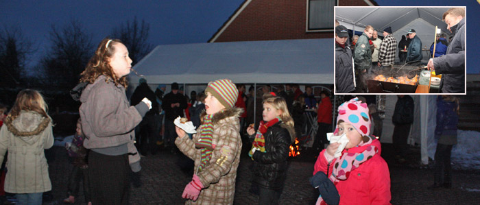 | Het bestuur van de buurtvereniging de Törfgroavers had het woensdag tegen de avond weer prima voor elkaar. In een partytent was de buurtoliebollenbakker druk bezig om alle buurtbewoners te voorzien van een lekkere oliebol. Ook waren er pannen met snert klaar gemaakt waar de buurtbewoners zich te goed aan konden doen. Vuurkorven op straat zorgden ervoor dat de sfeer om elkaar een goed uiteinde te wensen compleet was. |
