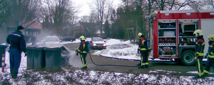 De brandweer van Peize kreeg tegen half een de melding van een container brandje bij de sporthal