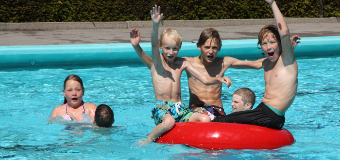 | Na een voor het zwembad zeer teleurstellende maand mei is juni hoopvol begonnen. Het aantal bezoekers dat deze woensdag de kassa passeerd is haast gelijk aan het totaal aantal bezoekers van de maand mei. 'Eén van de bezoekers verwachtte haast een prijs omdat hij het vermoeden had de honderdste bezoeker te zijn', aldus één van de vrijwilligers. Door de beschutting rond het zwembad hadden de kinderen geen last van de nog enigsinds frisse wind en konden ze volop genieten van het badwater dat momenteel ongeveer 22 graden warm is. |