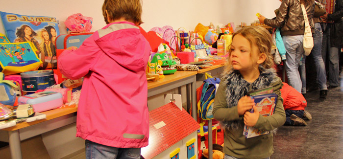 | Zaterdagochtend vond in de Esrank de halfjaarlijkse kleding- en speelgoedbeurs plaats. Op deze beurs kon naast speelgoed, winterkleding aangeboden worden. Op de beurs waar inwoners van Peize kleding en speelgoed inbrengen kan het door andere inwoners gekocht worden. Een gedeelte van de opbrengst wordt elk jaar geschonken aan een organisatie of activiteit in het dorp die zich inzet voor kinderen. De afgelopen maal mocht het Zomerbad Peize een bijdrage ontvangen waarvoor speelmateriaal is aangeschaft. Voor de huidige beurs was de inbreng van goederen enorm. Halverwege de termijn om in te schrijven moest men de inschrijving al sluiten omdat het maximale aantal deelnemers was bereikt. Ondanks het trieste weer was de opkomst van potentiële klanten ook deze ochtend weer groot, de verwachting is dat ook dit jaar weer een mooi bedrag aan een goed doel geschonken kan worden. |