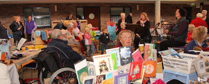 | In de Es Borg werd zaterdag van tien tot drie een hobbybeurs gehouden. Een kleine dertigtal hobbyisten waren met hun zelfgemaakte producten naar de Es Borg gekomen. Op de beurs waren exposanten die o.a. hun eigengemaakte sieraden, ansichtkaarten, diverse soorten textielwerken of natuurprodukten exposeerden. In de loop van de middag gaven de Sara's een korte voorstelling van een gedeelte uit hun rijk met liedjes gevulde Drents programma. De exposanten waren teleurgesteld over het weinige aantal bezoekers dat de beurs wist te vinden, 'al is het wel een tendens. Aan de andere kant kan je nou ook even rustig over je hobby praten met een geïnteresseerde', aldus één van hen. |