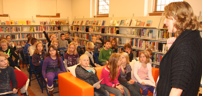 | In de bibliotheek van Peize hebben woensdagochtend de leerlingen van groep 6 van de basisscholen uitleg over de bibliotheek gehad. Na een korte uitleg over wat er in de bibliotheek allemaal te lenen is, en hoe je kunt vinden wat je wilt lenen gingen de kinderen zelf aan de slag. Via opdracht kaartjes moesten ze op zoek naar antwoorden die in boeken en op internet te vinden waren. Voor veel kinderen ging er een wereld open over wat er in de bieb allemaal te vinden was, en het leukst is ook nog dat het voor kinderen tot en met 18 jaar gewoon gratis is zei bibliothecaresse Monica Veeningen. De schoolbezoeken vormen een onderdeel van het al langer lopend beleid om de jeugd meer bij en naar de bibliotheek te trekken. |
