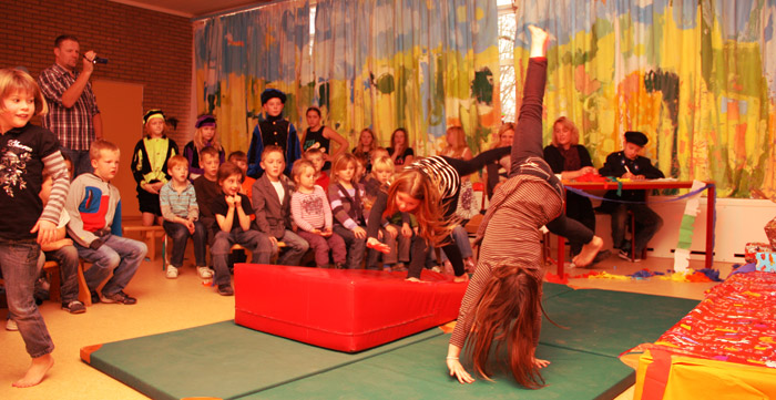 | Donderdagmiddag organiseerde de o.b.s Altena Altena's got talent bij hun op school. Dit ter voorbereiding op vrijdag 3 december, want dan komt Sinterklaas een bezoek brengen en willen zij aan Sinterklaas de talentvolle optredens presenteren. Als de talenten zich het dan net zo goed doen als donderdag dan krijgt Sint een geweldige show te zien. Er werd gedanst, gezongen, coole voetbal moves en acrobatiek van de bovenste plank bedreven. De anders altijd zo kritische jury voorzitter Henk-Jan, Demy, Smit kon net als zijn mede juryleden, niets anders dan geweldig en grote klasse tegen de deelnemers zeggen. En perfecte show van zowel licht, geluid als presentatie staat de Sint te wachten. |