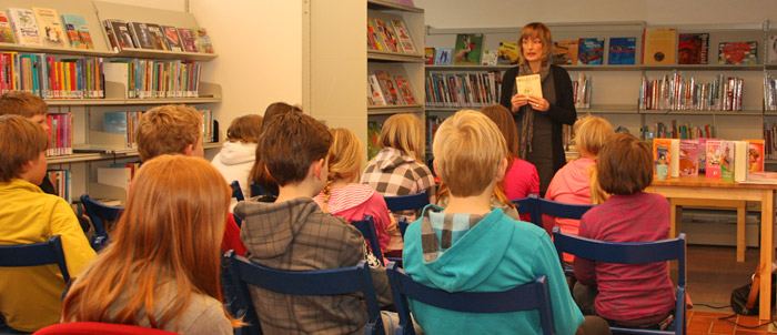 | In de bibliotheek van Peize was maandag kinderboekenschrijfster Els Rooijers te gast. Els verzorgde drie maal een uur informatie over boeken schrijven aan de leerlingen van de drie Peizer basisscholen. Rooijers van huis uit fysiotherapeute vertelde de kinderen dat een volhardende dochter (Lotje) haar tot het schrijven van een eerste boekje had gebracht. Opa's eiland is echter nooit uitgebracht omdat de uitgever te veel wensen had om het aan te passen dat het niet meer het boekje voor Lotje was. De uitgever was wel onder de indruk van haar schrijven dat hij haar vroeg een ander boek te schrijven, en daar zijn nu al meer dan twintig andere boeken achter aangekomen. Veel leerlingen van o.b.s Altena (1e school) hadden al één of meerdere boeken van Els gelezen. Els las ook een stukje uit het nieuwste boek, dat ze nu nog aan het schrijven is en waarvan ze heel nieuwsgierig hoe de kinderen het vinden. Kinderen die zelf willen schrijven raadde ze aan gewoon de avonturen die ze elke dag beleven aan het papier toe te vertrouwen. |