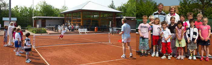 | Het bestuur van de Peizer tennisvereniging Peize verraste de jeugdcommissie met de aanschaf van 4 miniveld-netten, zodat voor de jeugd miniveldjes kunnen worden uitgezet op de "normale tennisvelden". Vrijdag mocht het kleinste jeugdlid - de 5-jarige Thomas van Gemert - met de huidige clubkampioen Han Eshuis, de eerste bal slaan.