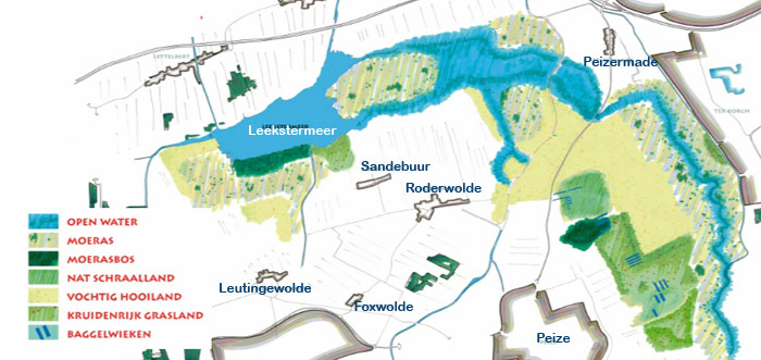 Peize. Betrokken inwoners en partijen zijn doormiddel van een nieuwsbrief en een informatie bijeenkomst hierover ingelicht. Het aanpakken van de wegen en fietspaden in het gebied zijn de laatste grote zichtbare veranderingen in het gebied. Op de website van De Onlanden staat een animatie waarin een overzicht van het gebied wordt gegeven met de verwachting hoe de verschillende (7) types natuur zich zullen gaan ontwikkelen. |