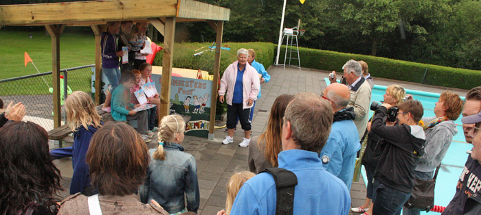het Peizer Zomerbad. Het badpersoneel was er weer in geslaagd om alle kandidaten voor het A, B en C-diploma goed voor te bereiden want alle kinderen zijn geslaagd. Ouders en grootouders waren weer massaal naar het bad gekomen om de kinderen aan te moedigen en te feliciteren met het behaalde diploma. Het A-diploma werd door 10 kinderen gehaald, voor B slaagden 12 kinderen en 7 kinderen wisten diploma C te bemachtigen. De Zuid Afrikaanse djembé speler Richard Pipe had de pech dat door het regenachtig weer de meeste mensen direct naar huis gingen en daardoor niet van zijn muziek genoten. Het slechte weer was voor het bad zaterdagmiddag en gelukje bij een ongeluk. Door een technische storing kon het bad namelijk niet open waardoor een enkeling voor een dichte poort stond. |
