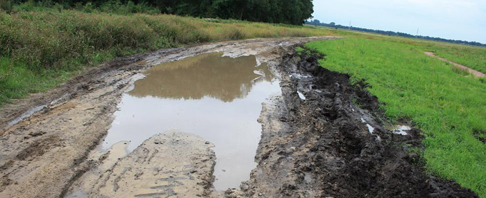 | Doordat de N372 bij Peizermade is afgesloten moeten automobilisten via Leek wel een kwartier langer over hun reis Peize - Groningen doen. Dat nodigt natuurlijk uit om op zoek te gaan naar sluip wegen. Maandagavond vertrok een automobilist om 22.00uur uit de stad om via de Verlengde Boterdijk (zandpad) en de Noorddijk naar Peize te rijden. Helaas is de Verlengde Boterdijk niet meer begaanbaar voor gewone auto's, bovenstaande foto is het resultaat nadat om 00.30uur de auto van de automobilist was losgetrokken. |