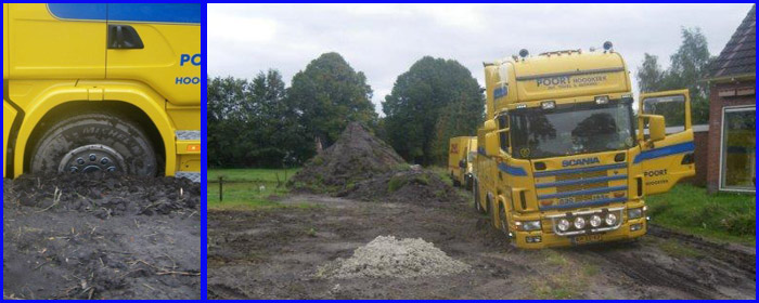 pad naast Hoveniersbedrijf Albert De Boer zat weer een bestelbus van een pakjesdienst vast. De chauffeur verklaarde nog nooit bij de achteruit liggende woning geweest te zijn, en wist dus niet dat hij deze ook via de verharde Norlingerweg kon bereiken. Nadat de berger de bestelwagen had losgetrokken bleek hij zelf tot de assen weggezakt in de blubber. Het leek er lange tijd op dat zwaarder materieel ingeschakeld moest worden om hem te bevrijden. Uiteindelijk lukte het de chauffeur zelf om, met de lier van het bergingsvoertuig om een dikke boom, de wagen los te trekken. |