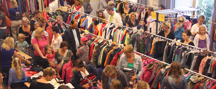| Ouders shoppen op winterkinderkledingbeurs |