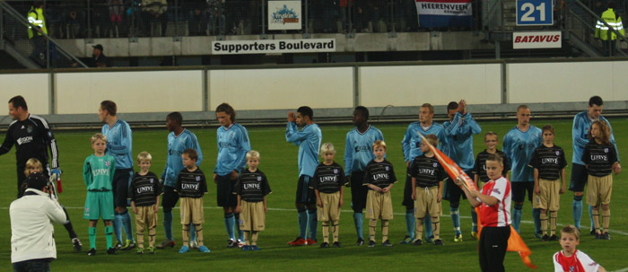 | VV Peize is met drie teams naar Jong Heerenveen – Jong Ajax geweest. De teams E3, F1 en F5 hebben een mooie en spannende wedstrijd beleefd. Voor een aantal spelers was het hoogtepunt dat zij aan de hand van Jong Ajax het veld op mochten voor de line up. |
