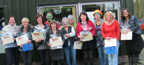 | Zaterdag konden tien cursisten van de Facepaintingcursus voor beginners en beginners-vervolg hun certificaat in ontvangst nemen uit handen van Tanja Hommes bij Beauty en Fun aan de Vossegatsweg. De eerste stap in de wereld van het kleurrijke schminken is begonnen, natuurlijk wensen we hun veel plezier en succes in de wereld van de fantasie op levend canvas. |