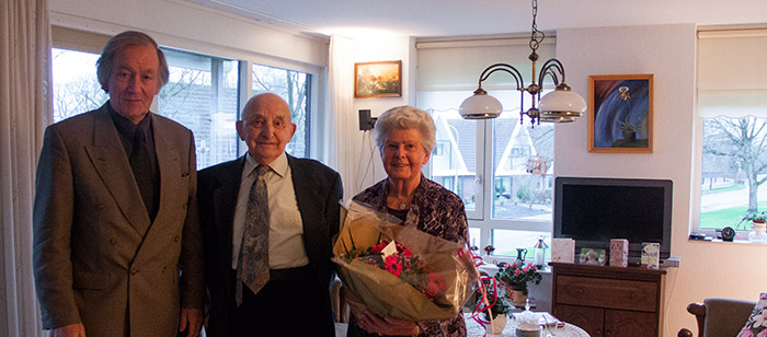 | Maandagochtend mocht burgemeester van der Laan van de gemeente Noordenveld weer naar Peize komen, nu om de familie Dekker te feliciteren met hun 65-jarig huwelijksjubileum. Roelof Dekker uit Lieveren wist de uit Peize afkomstige Grietje Ensing in 1947 zover te krijgen dat ze elkaar het Jawoord gaven in het Peizer gemeentehuis. 'Dat gebeurde in vergelijkbare weersomstandigheden als we nu hebben', vertelt Grietje. 'Ik moest toen 's morgens op de fiets eerst nog naar de kapper met dit weer'. De familie Dekker woont nu alweer elf jaar in de Peizerborg aan de Woerd, daarvoor woonden ze aan de Groningerweg en de Scharenhulsendijk. Dit weekend heeft het bruidspaar in goede gezondheid samen met familie, ze hebben 3 klein- en 3 achterkleinkinderen, het huwelijksjubileum gevierd. |