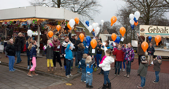 | Uiteindelijk waren het zo'n veertig kinderen die vrijdagmiddag naar De Pol waren gekomen om daar de Polmer kermis met het oplaten van ballonnen te openen. Terwijl de ballonnen rustig opstegen en koers namen richting het westen dwarrelden uit het oosten afkomstige sneeuwvlokjes naar beneden. Nadat de ballonnen waren vertrokken begon de zweefmolen en voor de kleintjes de vliegtuigjes aan hun eerste van vele rondjes deze paasdagen op De Pol. Naast de kermis heeft de organisatie van de Polmer kermis weer een gevarieerd programma opgesteld, naast het traditionele neutjeschait'n, fietstocht en Polmer Avond is er op zaterdag vanaf 16.00uur de Lentefair. Geert en Reina bieden deze dagen in café bar Kok weer een podium voor een keur aan verschillende live artiesten en bands. Klik hier voor kermiskorting. |
