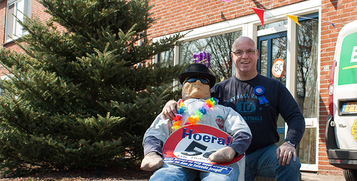 | ... nee Eric Huberts had niet gevraagd om de Abraham in de tuin om zijn vijftigste verjaardag te benadrukken, evenmin om de foto op DitisPeize.nl. Toch onderging de jarige het allemaal gelaten, hij had om mooi weer gevraagd en dat was het gelukkig. 'Vroeger vroeg ik altijd een nieuwe motor, vertelt de jarige met een grote glimlach, je wil niet weten hoeveel miniatuurtjes ik heb gehad'. Als wedstrijdsecretaris jeugd van de voetbalvereniging Peize draagt hij zijn steentje bij aan de sportstimulering voor de Peizer jeugd. Eric, die veel mensen in het verleden een computer heeft geleverd met de historische versies 3.0, 95, 98, XP en Vista van Windows, is tegenwoordig als glasvezel monteur werkzaam. Als fanatiek hardloper was hij misschien liever voor de festiviteiten weggerend, maar een knieblessure dwingt hem rustig aan te doen. |
