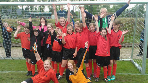 | De meiden van de Altena school, die onlangs schoolvoetbalkampioen van de gemeente Noordenveld zijn geworden, zijn in Vries als vierde geëindigd in het toernooi voor noord Drenthe. Eén doelpunt meer had betekend dat ze door waren gegaan naar de volgende ronde. Toch was deze plek een prestatie van formaat voor een zo'n kleine basisschool. |