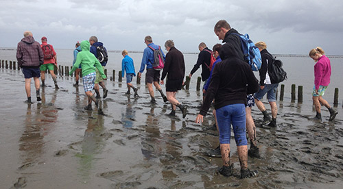 | Zondag zijn zestien leden van de buurtvereniging Het Klaverblad (Kerkstraat, Schoolstraat, Schoolplein en Kortlandseweg) het wadloopavontuur aangegaan. Om twaalf uur werd vanaf het haventje in Noordpolderzijl, voor een 2,5 uur durende wandeling. Eerst zwoegen door het slik langs