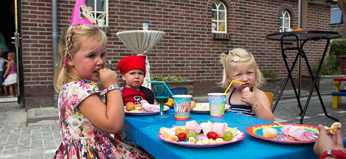 | Het kan de voorbijgangers over de Hoofdstraat vrijdagmiddag niet ontgaan zijn, het was feest op Villa Kakelbont. Ballonnen, vlaggetjes en vrolijke muzikale klanken maakten duidelijk dat het Zomerfeest werd gevierd. Het Zomerfeest dat gevierd werd met prachtig verklede piraten en prinsessen was ook de gelegenheid om een open huis te organiseren voor 'nieuwe' kinderen. Op deze vrolijke middag konden de kinderen genieten van een groot springkussen, zich laten schminken waardoor piraten er enger en de prinsessen er feeƫrieker uit kwamen te zien. Natuurlijk werd al het lekkers ook met graagte verorberd. |