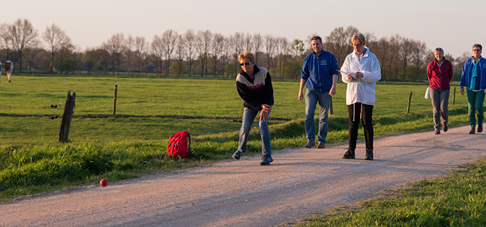| Na zo'n dik zestig worpen waren de eerste ploegen weer binnen woensdagavond bij de eerste klootschietavond van het seizoen 2014. Volksvermaken Peize mocht dit seizoen maar liefst 18 ploegen begroeten die graag in zes rondes de strijd om het klootschietkampioenschap van Peize met elkaar aangaan. Dat het voor sommigen (weer) even wennen was leiden we af aan de mededeling dat er weer 'wonderlijke worpen' bij waren. Bij de finish werd, anders dan bij andere sporten, openlijk over de gebruikte stimulerende middelen gesproken; 'mien Danoontje begint nou pas te werken, volgende keer toch eerder opeten!' |