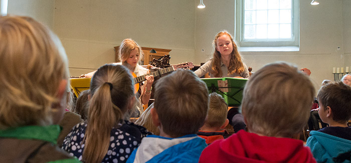 Vrijdagochtend werd door leerlingen van de Eskampen een schoolconcert in de Peizer kerk gegeven. In drie sessie werd er door de muzikale leerlingen, gezongen, op piano, viool, gitaar of blokfluit gespeeld. Sommige leerlingen speelden zelfstandig , anderen werden in hun spel begeleid door hun muziekleerkracht. Leerlingen die niet mee musiceerden kwamen, net als ouders en andere familieleden, naar de fraai gespeelde muziekstukken luisteren die door de akoestiek van de kerk nog beter tot hun recht kwamen.