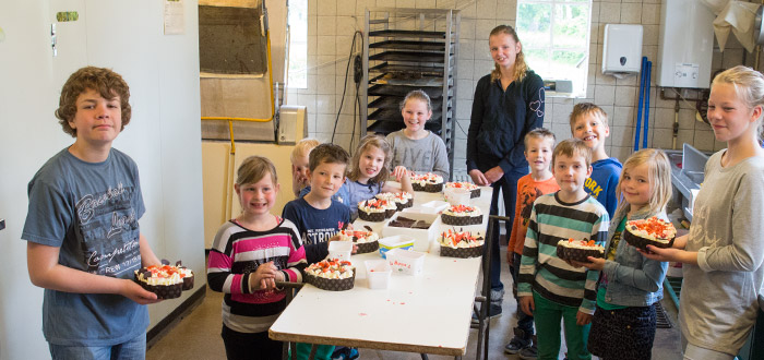 | Zo'n vijftig moeders uit Peize zullen zondag een uiterst smakelijke zondag beleven. Hun kinderen hadden zich namelijk opgegeven voor het maken van een heerlijke moederdagtaart bij bakker Ons Belang. Nadat de cake in de vorm van hoe kan het ook anders een groot hart was voorzien van de nodige botercrème en slagroom werd deze uiterst feestelijk afgewerkt met aardbeien, suikerbloempjes en hartjes en heerlijke chocolade. Dat bij het maken van deze overheerlijke taart af en toe wat in de diverse kindermondjes verdween zorgde alleen maar voor meer plezier bij jong en oud in de bakkerij. |