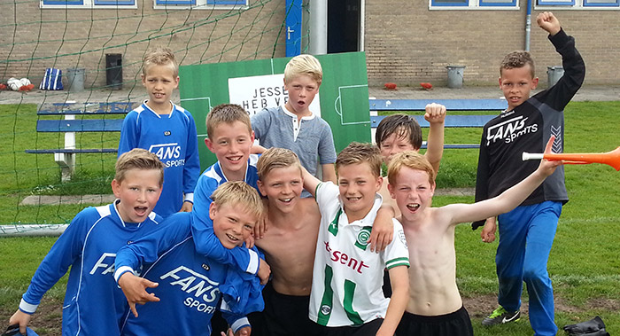 | Na een met 3 - 2 gewonnen laatste competitiewedstrijd hebben de voetbalkameraden van Jesse Glasbergen afscheid van hem genomen. Jesse zal vanaf het komend seizoen als jeugdspeler wedstrijden voor de D-ers van FC Groningen spelen. Twee jaar geleden werd de jonge Peizenaar door de club uit de stad al gescout en sindsdien traint hij regelmatig bij de ploeg 'oet Stad'. Vanaf het komend seizoen gaat hij vier dagen in de week trainen en zal hij in de competitie dus voor Groningen uitkomen. Van zijn teamgenoten van Peize E1 kreeg hij een bal met daarop al hun handtekeningen als aandenken. Jesse op zijn beurt trakteerde hun allemaal broodjes met veel knakworsten. |