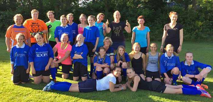 | De meiden D1 van de voetbalvereniging Peize hebben donderdagavond als afsluiting van het seizoen een wedstrijd tegen de moeders gespeeld. De MD1 meiden hebben een goed seizoen achter de rug met een kampioenschap in de najaar reeks en ze werden kampioen in de zaal. De moeders hadden het dan ook moeilijk en werden met een 6-4 nederlaag van de mat gespeeld. Een penalty reeks die volgde werd door de moeders op spectaculaire wijze gewonnen. Al met al een mooie afsluiting van een leuk seizoen. |