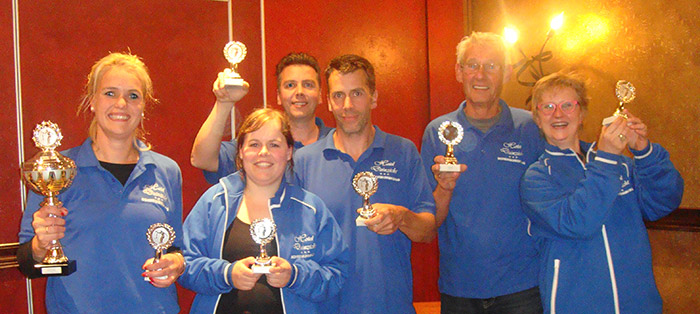 | Zes avonden zijn de klootschieters deze zomer weer door Peize en omgeving getrokken om tot een uiteindelijke overall winnaar te komen. Dit jaar waren het de mannen en vrouwen van de Klojo's die zich uitbundig konden laten feliciteren door de overige 17 ploegen. Met een totaal van 106 bij elkaar gegooide punten staken ze duidelijk boven de ander teams uit. Met 96 punten volgden de Joekies op een tweede plek. Een derde plaats met 91 punten was er voor de winnaar van vorig jaar het team Plons. |