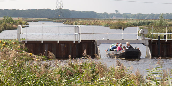 | Het thema dit jaar van de Open Monumentendagen is 'Op reis'. Veel monumenten die in het teken staan van reizen en vervoer zijn daarom geopend. Tussen het Gemaal Peizermade en haven van Roderwolde kan al een aantal jaren een reis gemaakt worden. Tussen beide locaties wordt ook dit weekend met een praam een tocht van ongeveer drie kwartier gevaren. Vorig jaar werd nog even gedacht dat door de dit jaar geplaatste stuw in het Peizerdiep de tocht niet meer mogelijk zou zijn maar zaterdag bleek dit (even bukken) geen onoverkomelijk obstakel. Vanuit de praam lieten de eerste 20 deelnemers weten het een prachtige tocht te vinden en een aanrader om dit weekend op te stappen. Naast het Gemaal Peizermade zijn in Peize traditioneel ook de PaiserMeul en de kerk (alleen zaterdag) open met de Monumentendagen. |