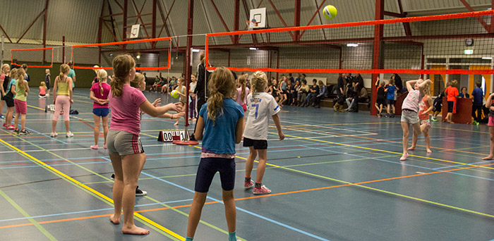 | >In de Peizer sporthal vond woensdagochtend de afsluiting plaats van een aantal weken volleybalgymles. Leerlingen van groep 5, 6 en 7 van beide Peizer basisscholen hadden de afgelopen hard getraind om de beginselen van het volleybalspel onder de knie te krijgen. Met aangepaste regels mochten ze woensdag in toernooivorm de strijd met elkaar aangaan. Met op de tribune vele ouders en grootouders werd met verve de bal heen en weer over het net gewerkt. De volleybalvereniging Peize had met een aantal vrijwilligers en trainers de organisatie rond deze volleybalactiviteiten in handen. Met het op school ook spelen van volleybal hoopt de vereniging de jeugdafdeling weer op te laten bloeien. |