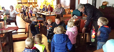 Op maandagochtend waren de kinderen van Villa Kakelbont al met hun fraai gemaakte stoplicht lampionnen in de Hoprank geweest. Zij hadden op De Deel uit volle borst hun ingestudeerde liedjes ten gehore gebracht en waren daar ook rijkelijk voor beloond. Kinderen die dinsdag op kinderdagverblijf de Kameleon zijn gaan 's middags met hun 'lichies' ook nog langs bij de Hoprankbewoners. |