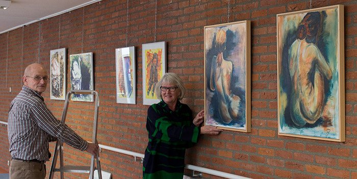 'Heel divers, zowel in onderwerp, uitvoering als in techniek', geeft schilderes Fokje Oosterveld uit Leek aan als het om de geƫxposeerde schilderijen in De Hoprank gaat. Om de twee maand hangen er in de lange gang naar de Deel in de Hoprank werken van een andere kunstenaar. Vrieso Rademaker is namens de expositiecommissie steeds behulpzaam bij het inrichten van de expositie. Sinds haar kinderjaren is Fokje al bewust aan het tekenen, soms wat meer, soms wat minder. In haar werk probeert ze bepaalde sfeerbeelden te vangen van een bijvoorbeeld een gesprek tussen moeders of het licht in een landschap. Voor haar geldt niet zozeer het resultaat als wel de tocht naar het eindproduct. Naast fraaie naakten wordt