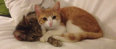 | De rode poes, Sonja, is al twee dagen niet meer thuisgekomen. Heeft u de poes gezien dan vernemen de eigenaren dit graag. Sonja woont aan de Oude Velddijk. Baasjes zijn erg ongerust omdat ze afgelopen herfst ook al ploseling afscheid hebben moeten nemen van zusje van Sonja, poes Suus. Dit is nl de andere grijze poes op de foto. Update, Sonja is, 'gehavend en naar vis stinkend', weer binnen komen wandelen. |