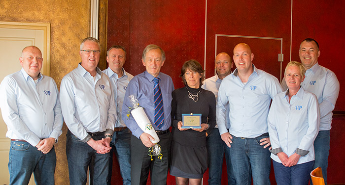 | 'Hest goud doan', met die woorden vertolkte voorzitter Richard Veurman hoe de Vereniging Volksvermaken Peize de samenwerking met burgemeester van der Laan heeft ervaren. Per 1 oktober neemt van der Laan afscheid als burgemeester van de gemeente Noordenveld. Veurman nam maandag tijdens een informele lunch met het burgemeesterspaar al een voorschot op het afscheid. 'Jullie waren er altijd even bij als wij iets voor het dorp organiseerden, daar willen we jullie bij deze toch graag voor bedanken', waarna hij hun de VVP badlaken overhandigde. 'Omdat we weten hoe jij, Hans, denkt over onze club', refererend naar een toespraak bij de volksvermaken in Roden ging Veurman verder, 'hebben wij nagedacht over een passende blijk van waardering. We hebben daarom besloten Wilma, om jou dit aan te bieden in de hoop dat je dit aanvaard'. Hierop overhandigde hij Wilma van der Laan een plaquette met de tekst 'Beschermvrouwe Vereniging Volksvermaken Peize'. 'Heel graag' was haar spontane, licht geƫmotioneerde reactie, 'dit aanvaard ik graag'. |
