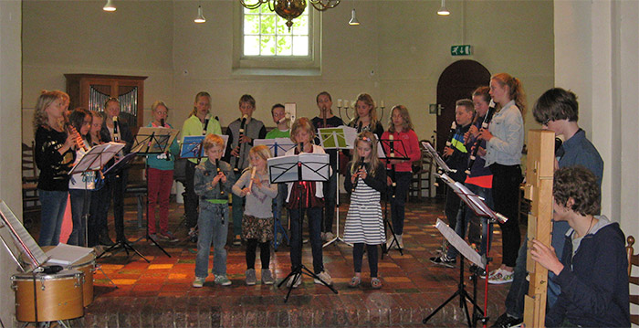 | Zaterdagmiddag vond de jaarlijkse einduitvoering plaats van Studio Bon Ton waar alle jeugdleerlingen zich van hun beste kant lieten horen! Individueel, samen en in groepjes en ook echt met z'n allen! De groep bestaat uit leerlingen van zes t/m achttien jaar en ze bespelen (naarmate ze verder gevorderd zijn) alle blokfluiten van gar klein flötlein t/m subbas! Er was ook een diversiteit aan muziekstijlen: van klassiek (Tchaikovski, Bizet, Purcell, Brahms) t/m jazz, pop, rock en roll en alles wat daar tussenin zit! Een boeiende middag met enthousiast publiek! |