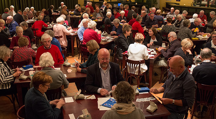 | Eiske Stelling en Gerard van Groeningen vonden het 18 jaar terug jammer dat de bridgeclub Peize ophield te bestaan. Om in Peize het bridgen niet volledig te laten verdwijnen organiseren sindsdien de jaarlijkse bridgedrive in zaal Boonstra. Zeventig bridgeparen kunnen in een ontspannen sfeer dan hun spel spelen in een 7 ronden durend toernooi. Dit jaar was het toernooi bijna volledig bezet met zo'n dertig deelnemers uit Peize en de rest vooral uit de regio van Stadskanaal tot Zuidhorn. Een oud inwoonster uit Peize nu woonachtig in Soest en een paar uit Maastricht zorgen